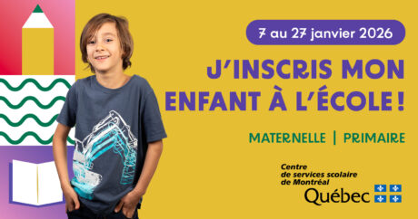 L’inscription pour un nouvel élève du préscolaire ou du primaire doit être faite au secrétariat de l’école de son quartier du 7 au 27 janvier 2026, entre 9h et 15h (secrétariat fermé entre 11h30 et 12h30) ou le mardi 13 janvier 2026, de 18h00 à 20h00.